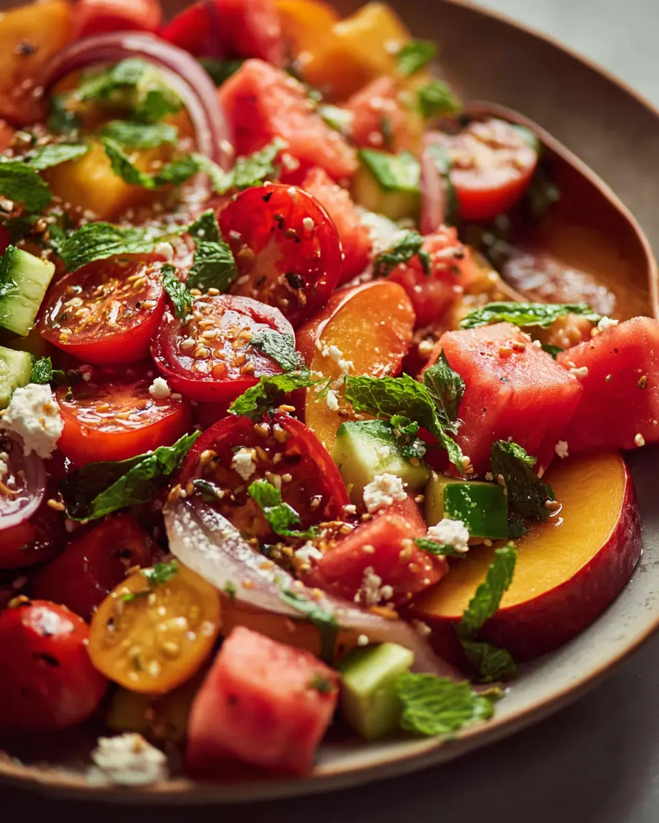 Creating a vibrant Watermelon Peach Salad is not just about mixing ingredients but rather about layering flavors and textures that scream summer. Let's break down each step in this delightful and refreshing recipe!