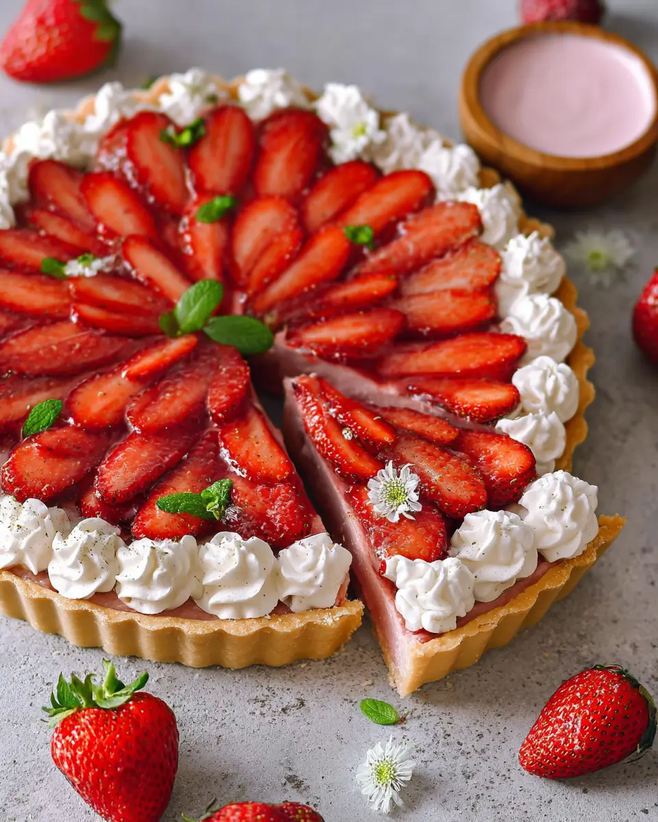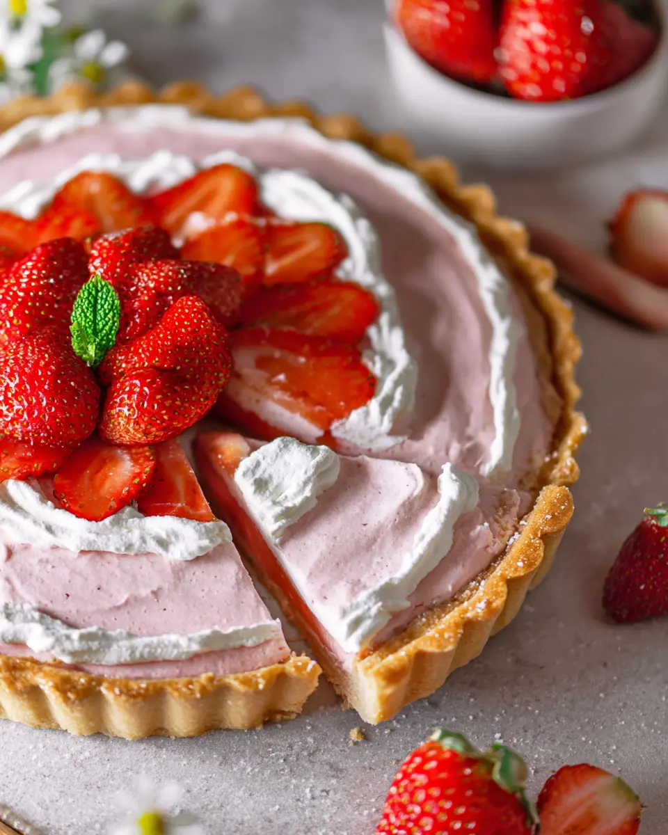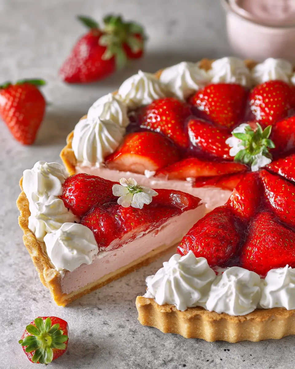 In summary, this whipped strawberry tart is not only visually stunning but also a delightful treat to savor. Whether served at a summer gathering or as a delightful end to a weeknight meal, its creamy texture and fresh flavor combine perfectly. Enjoy the experience of making and sharing this tart with loved ones!